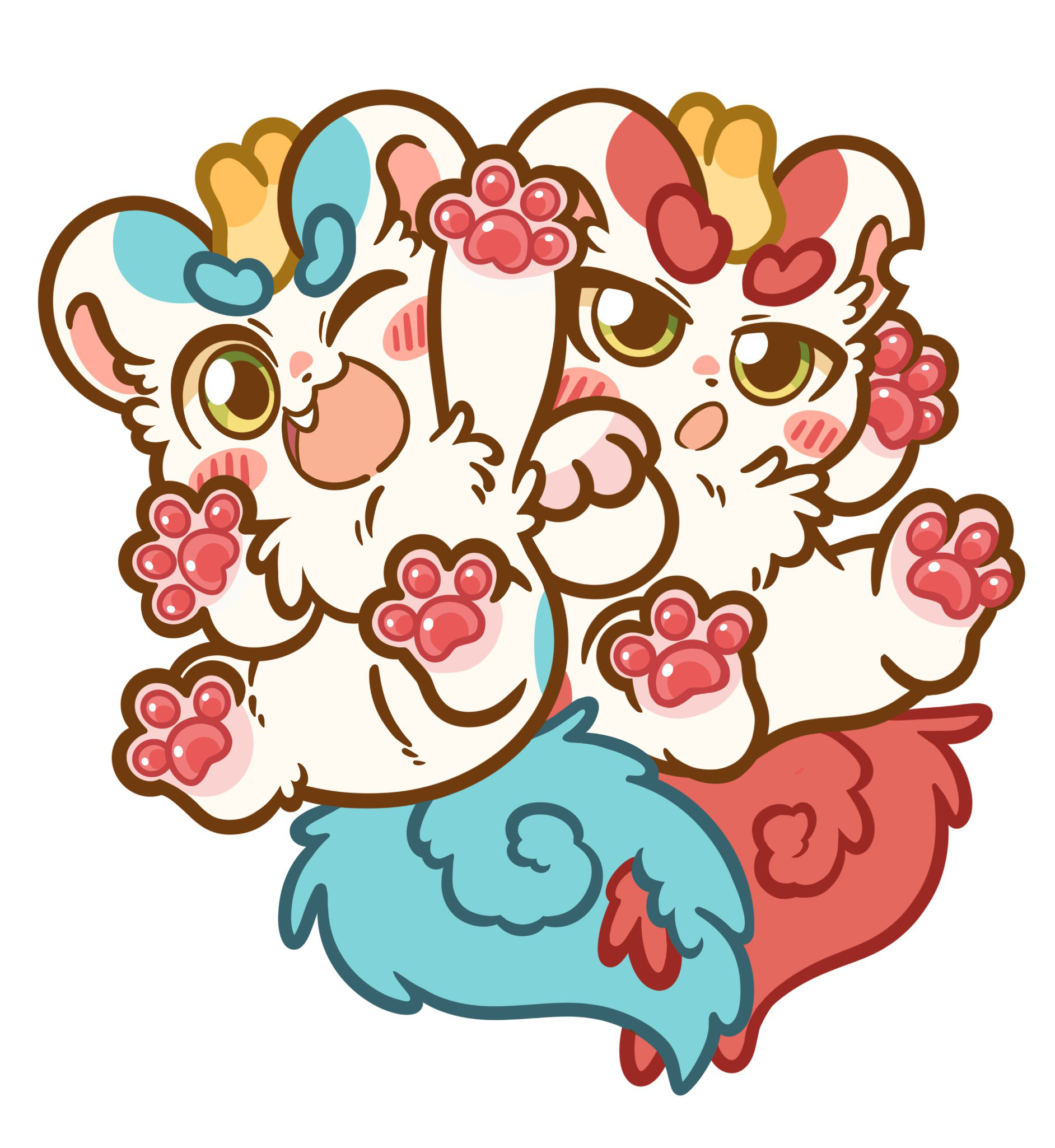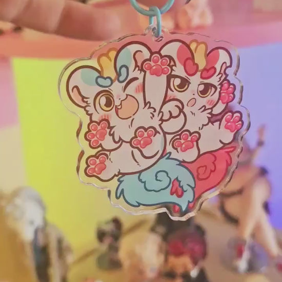 A cute 2.36" acrylic keychain of Tianlu and Bixie from the Chinese series You Shou Yan (Fabulous Beasts).